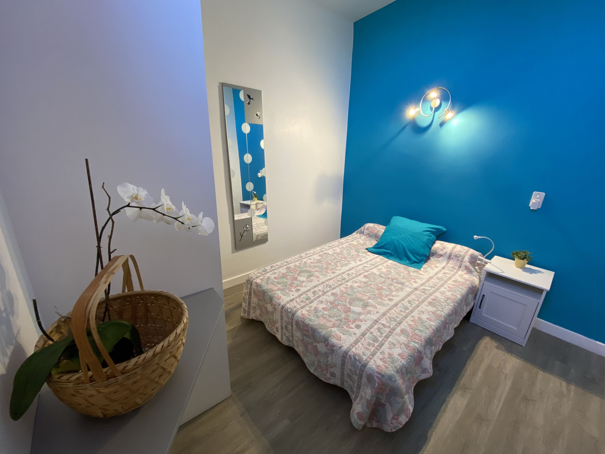 Cet appartement est tout confort et très calme. Il se compose de deux chambres à lit double et d'une cuisine toute équipée et d'une salle d'eau privée.