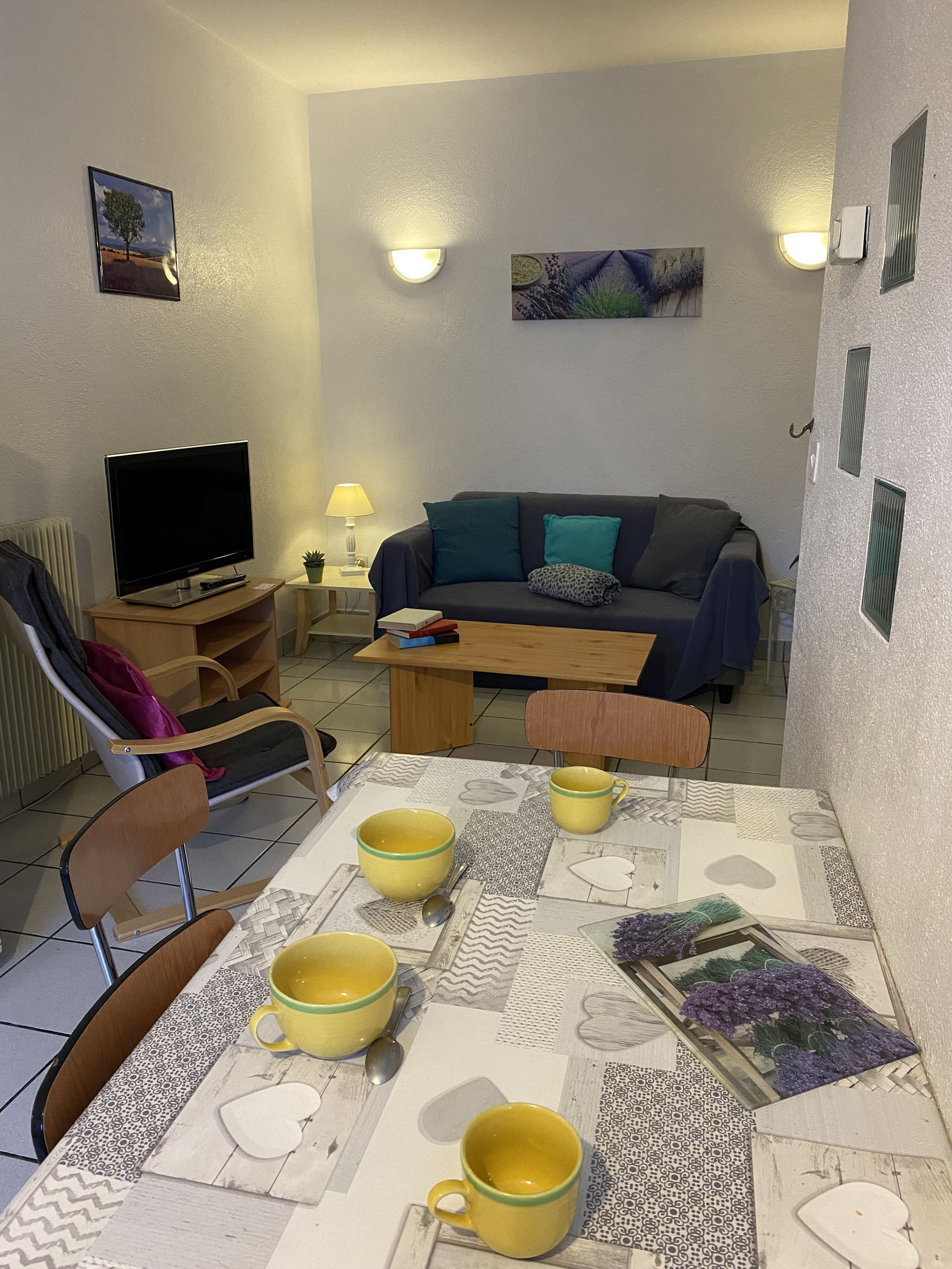 Cet appartement est tout confort. Il est doté une chambre avec deux lits jumeaux, d'un salon orienté plein sud, d'une cuisine toute équipée et d'une salle de bain récemment rénovée. Il est classé deux étoiles par Thermauvergne, le classement des Meublés.